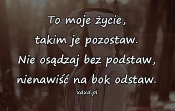 842 Cytaty o życiuNie osądzaj bez podstaw, nienawiść na bok odstawTo moje życie, takim je pozostaw. Nie osądzaj bez podstaw, nienawiść na bok odstaw.