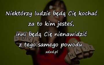 Niektórzy ludzie będą Cię kochać za to kim jesteś, inni będą Cię nienawidzić z tego samego powodu.