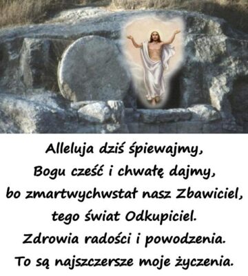 Alleluja dziś śpiewajmy, Bogu cześć i chwałę dajmy, bo zmartwychwstał nasz Zbawiciel, tego świat Odkupiciel. Zdrowia radości i powodzenia. To są najszczersze moje życzenia.