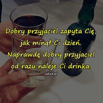Dobry przyjaciel zapyta Cię, jak minął Ci dzień. Naprawdę dobry przyjaciel od razu naleje Ci drinka.