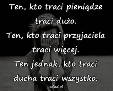 Ten, kto traci pieniądze traci dużo. Ten, kto traci przyjaciela traci więcej. Ten jednak, kto traci ducha traci wszystko.