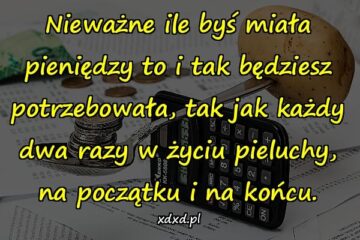 Nieważne ile byś miała pieniędzy to i tak będziesz potrzebowała, tak jak każdy dwa razy w życiu pieluchy, na początku i na końcu.