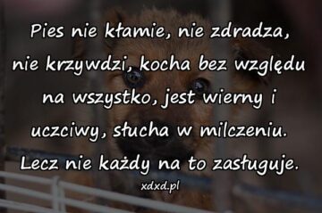 Pies nie kłamie, nie zdradza, nie krzywdzi, kocha bez względu na wszystko, jest wierny i uczciwy, słucha w milczeniu. Lecz nie każdy na to zasługuje.