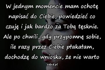 W jednym momencie mam ochotę napisać do Ciebie, powiedzieć co czuję i jak bardzo za Tobą tęsknie. Ale po chwili, gdy przypomnę sobie, ile razy...