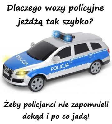 Dlaczego wozy policyjne jeżdżą tak szybko? Żeby policjanci nie zapomnieli dokąd i po co jadą!