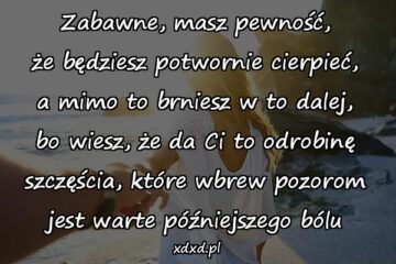 Zabawne, masz pewność, że będziesz potwornie cierpieć, a mimo to brniesz w to dalej, bo wiesz, że da Ci to odrobinę szczęścia, które wbrew pozorom...