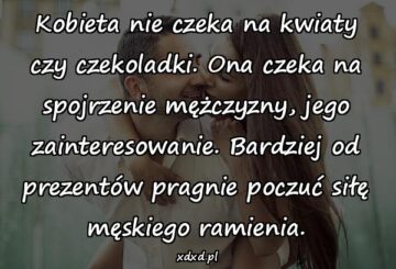 Kobieta nie czeka na kwiaty czy czekoladki. Ona czeka na spojrzenie mężczyzny, jego zainteresowanie. Bardziej od prezentów pragnie poczuć siłę męskiego ramienia.