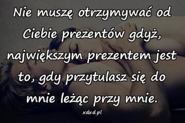 Nie muszę otrzymywać od Ciebie prezentów gdyż, największym prezentem jest to, gdy przytulasz się do mnie leżąc przy mnie.