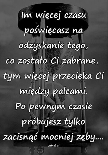 Im więcej czasu poświęcasz na odzyskanie tego, co zostało Ci zabrane, tym więcej przecieka Ci między palcami. Po pewnym czasie próbujesz tylko zacisnąć mocniej zęby….