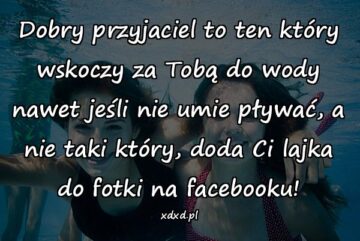 Dobry przyjaciel to ten który wskoczy za Tobą do wody nawet jeśli nie umie pływać, a nie taki który, doda Ci lajka do fotki na...