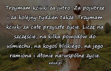 Trzymam kciuki za jutro. Za pojutrze i za kolejny tydzień także. Trzymam kciuki za całe przyszłe życie. Liczę na szczęście, na kilka powodów do uśmiechu,...