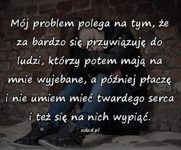 Mój problem polega na tym, że za bardzo się przywiązuję do ludzi, którzy potem mają na mnie wyjebane, a później płaczę i nie umiem mieć...