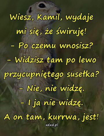 Wiesz, Kamil, wydaje mi się, że świruję! – Po czemu wnosisz? – Widzisz tam po lewo przycupniętego susełka? – Nie, nie widzę. – I ja...