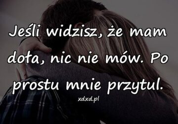 Jeśli widzisz, że mam doła, nic nie mów. Po prostu mnie przytul.