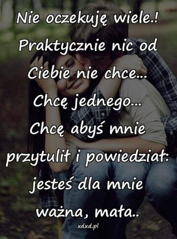 Nie oczekuję wiele.! Praktycznie nic od Ciebie nie chce… Chcę jednego… Chcę abyś mnie przytulił i powiedział: jesteś dla mnie ważna, mała..