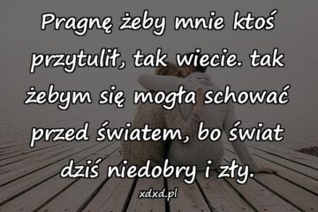 Pragnę żeby mnie ktoś przytulił, tak wiecie. tak żebym się mogła schować przed światem, bo świat dziś niedobry i zły.