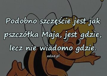 825 Cytaty o życiuJest gdzie, lecz nie wiadomo gdziePodobno szczęście jest jak pszczółka Maja, jest gdzie, lecz nie wiadomo gdzie.