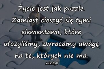 Życie jest jak puzzle. Zamiast cieszyć się tymi elementami, które ułożyliśmy, zwracamy uwagę na te, których nie ma.