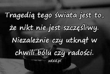 Tragedią tego świata jest to, że nikt nie jest szczęśliwy. Niezależnie czy utknął w chwili bólu czy radości.