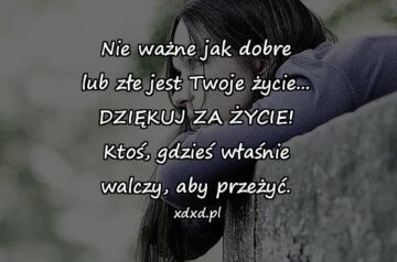 Nie ważne jak dobre lub złe jest Twoje życie… DZIĘKUJ ZA ŻYCIE! Ktoś, gdzieś właśnie walczy, aby przeżyć.