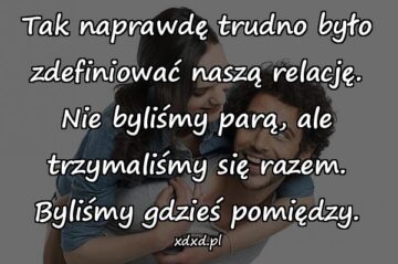 Tak naprawdę trudno było zdefiniować naszą relację. Nie byliśmy parą, ale trzymaliśmy się razem. Byliśmy gdzieś pomiędzy.