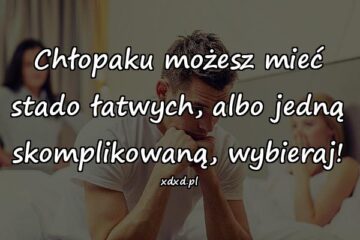 838 Cytaty o miłościWolisz stado łatwych czy jedną skomplikowanąChłopaku możesz mieć stado łatwych, albo jedną skomplikowaną, wybieraj!