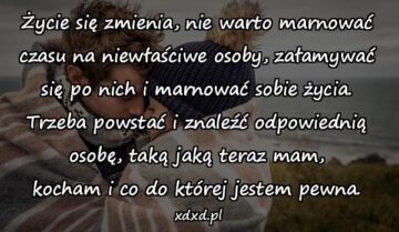 Życie się zmienia, nie warto marnować czasu na niewłaściwe osoby, załamywać się po nich i marnować sobie życia. Trzeba powstać i znaleźć odpowiednią osobę, taką...