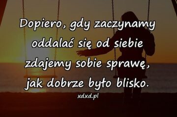Dopiero, gdy zaczynamy oddalać się od siebie zdajemy sobie sprawę, jak dobrze było blisko.