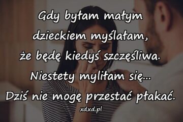Gdy byłam małym dzieckiem myślałam, że będę kiedyś szczęśliwa. Niestety myliłam się… Dziś nie mogę przestać płakać.