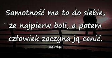 Samotność ma to do siebie, że najpierw boli, a potem człowiek zaczyna ją cenić.