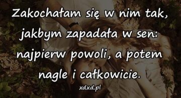 Zakochałam się w nim tak, jakbym zapadała w sen: najpierw powoli, a potem nagle i całkowicie.