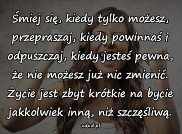 Śmiej się, kiedy tylko możesz, przepraszaj, kiedy powinnaś i odpuszczaj, kiedy jesteś pewna, że nie możesz już nic zmienić. Życie jest zbyt krótkie na bycie...