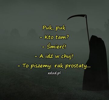Puk, puk – Kto tam? – Śmierć! – A idź w chuj! – To piszemy: rak prostaty…