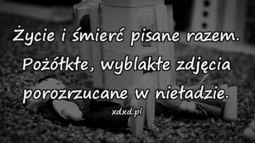 Życie i śmierć pisane razem. Pożółkłe, wyblakłe zdjęcia porozrzucane w nieładzie.