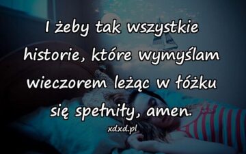 I żeby tak wszystkie historie, które wymyślam wieczorem leżąc w łóżku się spełniły, amen.
