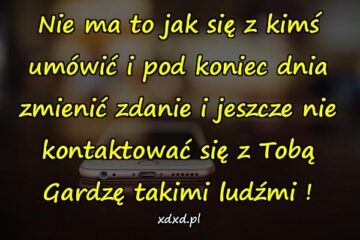 Nie ma to jak się z kimś umówić i pod koniec dnia zmienić zdanie i jeszcze nie kontaktować się z Tobą Gardzę takimi ludźmi !