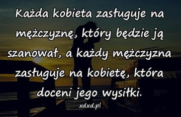 Każda kobieta zasługuje na mężczyznę, który będzie ją szanował, a każdy mężczyzna zasługuje na kobietę, która doceni jego wysiłki.
