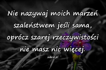 Nie nazywaj moich marzeń szaleństwem jeśli sama, oprócz szarej rzeczywistości nie masz nic więcej.
