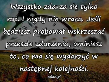 Wszystko zdarza się tylko raz. I nigdy nie wraca. Jeśli będziesz próbował wskrzeszać przeszłe zdarzenia, ominiesz to, co ma się wydarzyć w następnej kolejności.