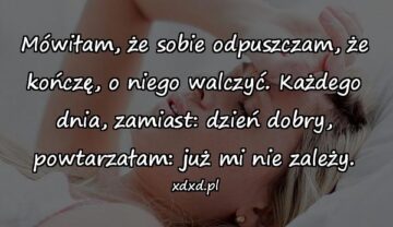 Mówiłam, że sobie odpuszczam, że kończę, o niego walczyć. Każdego dnia, zamiast: dzień dobry, powtarzałam: już mi nie zależy.