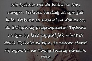 Nie tęsknisz tak do końca za Nim samym. Tęsknisz bardziej za tym jak było. Tęsknisz za smsami na dobranoc, do których się przyzwyczaiłaś. Tęsknisz za...