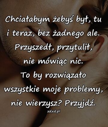 Chciałabym żebyś był, tu i teraz, bez żadnego ale. Przyszedł, przytulił, nie mówiąc nic. To by rozwiązało wszystkie moje problemy, nie wierzysz? Przyjdź.