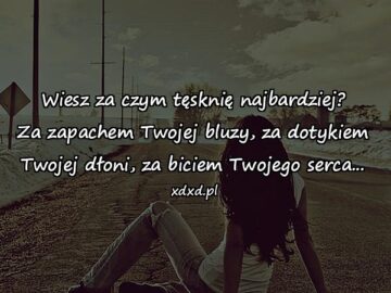 Wiesz za czym tęsknię najbardziej? Za zapachem Twojej bluzy, za dotykiem Twojej dłoni, za biciem Twojego serca…