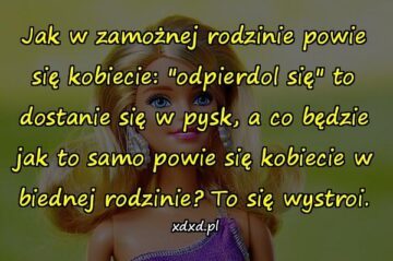 Jak w zamożnej rodzinie powie się kobiecie: „odpierdol się” to dostanie się w pysk, a co będzie jak to samo powie się kobiecie w biednej...