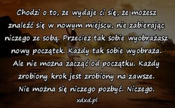 Chodzi o to, że wydaje ci się, że możesz znaleźć się w nowym miejscu, nie zabierając niczego ze sobą. Przecież tak sobie wyobrażasz nowy początek....