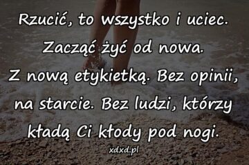 Rzucić, to wszystko i uciec. Zacząć żyć od nowa. Z nową etykietką. Bez opinii, na starcie. Bez ludzi, którzy kładą Ci kłody pod nogi.