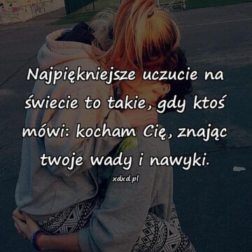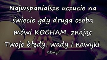 Najpiękniejsze uczucie na świecie to takie, gdy ktoś mówi: kocham Cię, znając twoje wady i nawyki.