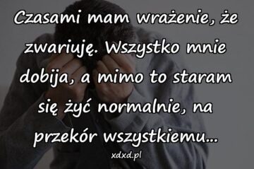 Czasami mam wrażenie, że zwariuję. Wszystko mnie dobija, a mimo to staram się żyć normalnie, na przekór wszystkiemu…