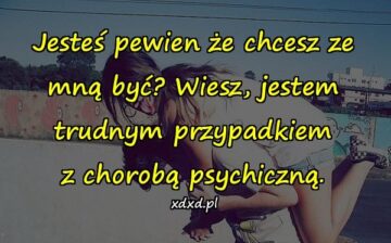 Jesteś pewien że chcesz ze mną być? Wiesz, jestem trudnym przypadkiem z chorobą psychiczną.