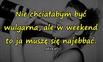Nie chciałabym być wulgarna, ale w weekend to ja muszę się najebbać.